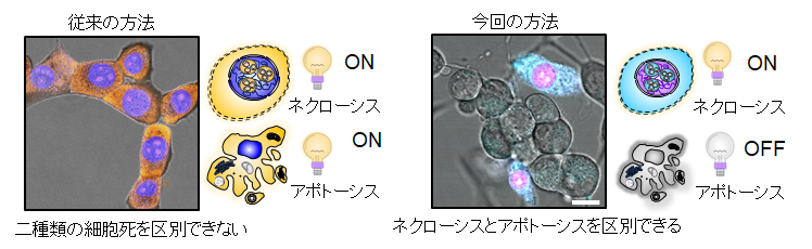 図4 プログラムされた細胞死(アポトーシス)と望まない偶発的な細胞死(ネクローシス)の区別が可能