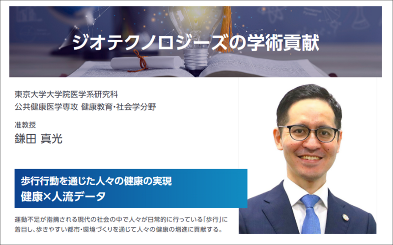ジオテクノロジーズ株式会社(本社:東京都文京区、代表取締役社長:八剱 洋一郎)は、コーポレートウェブサイトにおいて、当社の人流データを活用した学術研究の取り組みを紹介する「産学連携の取り組み」ページを新設したことをお知らせします。