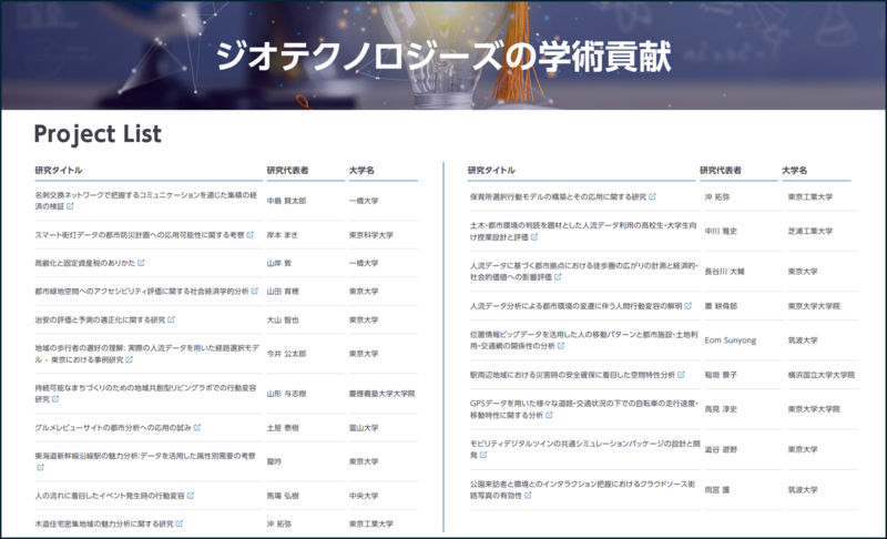 今回開設した学術研究紹介ページでは、これまで当社が支援してきた共同研究の成果を広く発信することで、人流データの社会的価値をさらに高め、学術界・自治体・企業との連携を一層促進することを目的としています。