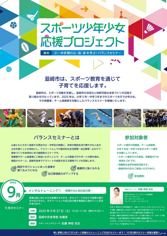 参加対象者は、スポーツ選手の保護者の方、チーム指導者の方、小学5年生〜中学3年生のスポーツ選手。
