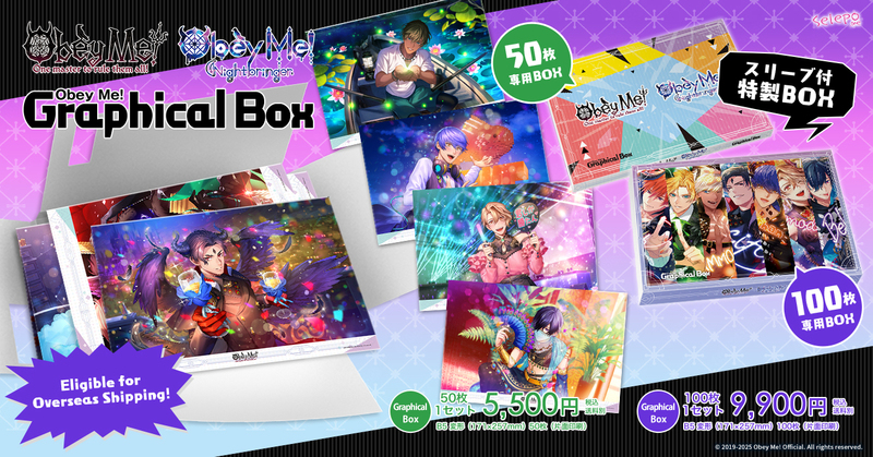 お好きなアートをお好きなだけ!セレポの選べるアートセット・GraphicalBoxにてスリムでも満足度が高い50枚セットと、新商品として圧倒的ボリュームの100枚セットをご用意しました。いずれもアートを手触りの良い高級紙に高画質印刷にてお届けいたします。また、今回の「Obey Me! 」「Obey Me! Nightbringer」 のセレポGraphicalBoxは海外からもご購入いただくことができますので、海外にお住まいのファンの皆様も必見です。