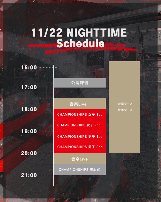 招待選手16名とレールコンテスト上位入賞者によるエキシビションマッチ。トップライダーの華麗な技が間近で見られるだけでなく、演出・音楽・照明とともに“ストリートカルチャー”を体感できるステージ構成で行われ、昨年約5000名の観客を熱くしたエンターテインメント性の高さは必見です。