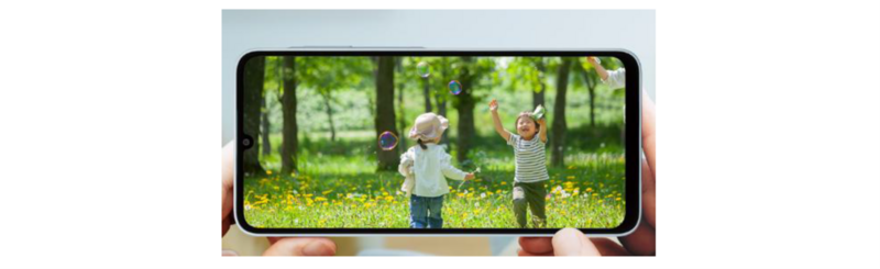 シリーズ初※1、2眼カメラを搭載しました。高精細約5,000万画素カメラでは風景や家族を、新たに搭載の約200万画素マクロカメラでお花やペットなど接写も美しく撮影できます。シーンに合わせて写真の色味やコントラストを自動で最適化するため、シャッターを押すだけで誰でもかんたん、きれいに写真撮影ができます。さらに、microSDカード※2に対応しており、容量を気にせず思う存分思い出を残せます。