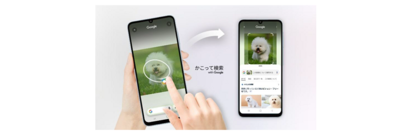 動物やお花の名前など、「これ何だろう?」というときは、ホームボタンを長押しして、くるっと丸でかこむだけですぐ検索※。この「かこって検索」機能を使えば、検索バーに文字を入れることなく、画面上のあらゆるもの がすぐに検索可能に。アプリの切り替えをせず直感的な検索が可能です。静止画・動画・ウェブブラウザ・SNSなどあらゆる場面で活躍します。