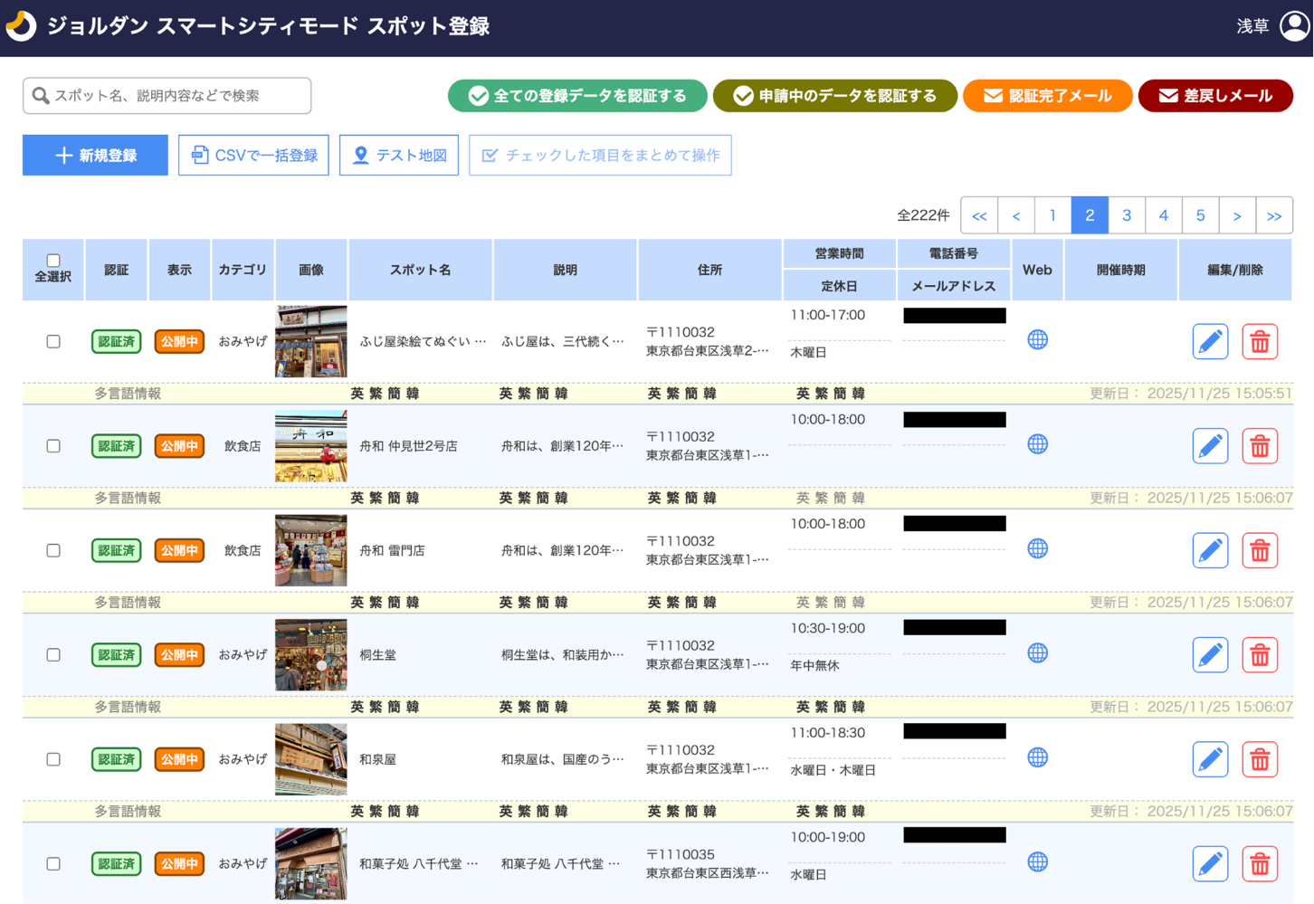 浅草モードに表示されるスポットについて、エリア事業者やイベント主催者が直接情報を登録できるCMSをリニューアルし、各事業者にご提供します。