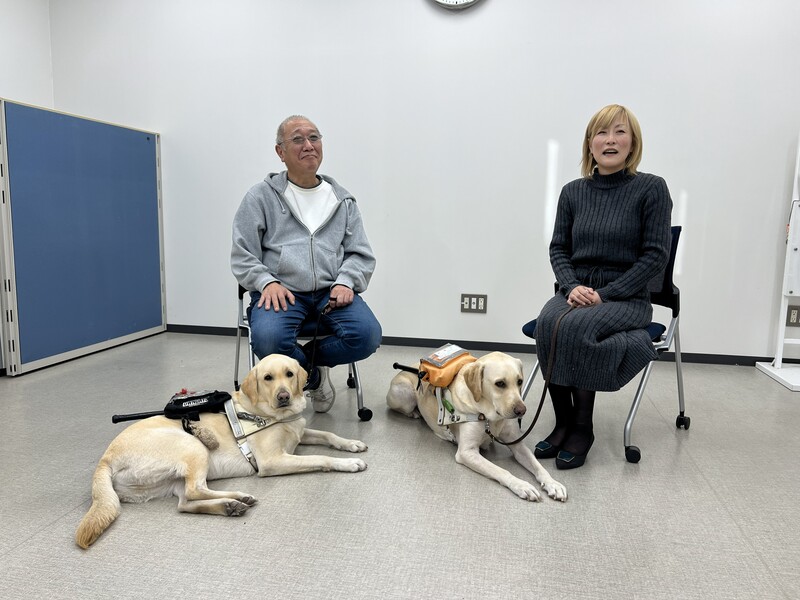 【 左:若山さん&盲導犬ダンデ、右:石川さん&盲導犬デュオ 】