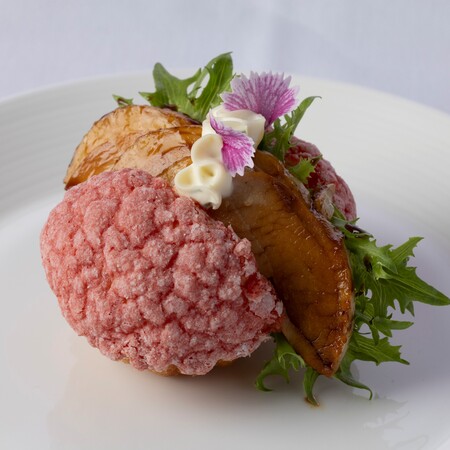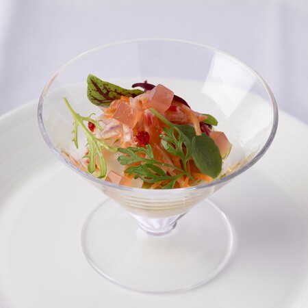 なめらかなトンナートと、フランボワーズビネグレットで和えたシーフードマリネに、ダイス状にカットした苺のジュレをトッピング。爽やかな酸味をご堪能いただきます。